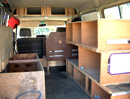 dahinter der Kühlschrank, darunter Platz für Werkzeug und Recovery