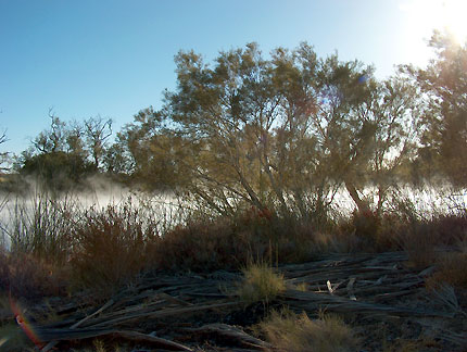 Morgendunst über den warmen Quellen von Dalhousie Springs