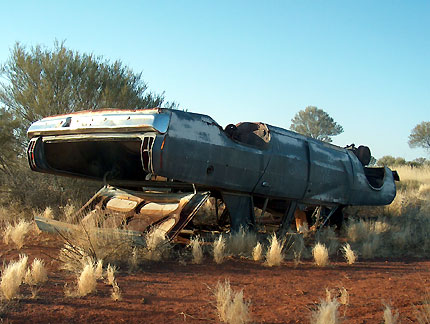 Autowrack beim Bushcamp bei Len Beadell Tree