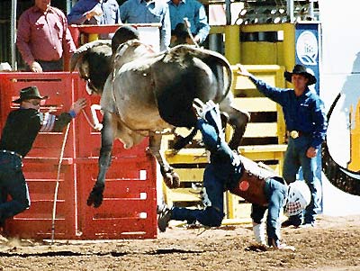 Diseser Sprung des Bullen war für den Rider einer zuviel