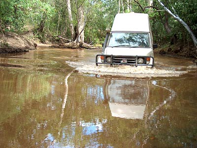 Das nächste Hindernis: die Durchquerung des Ducie Creeks. Eine ziemlich breit Ueberquerung, aber ohne Probleme zu fahren.