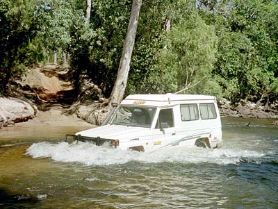 Die Schwierigkeit im Cockatoo Creek besteht darin, dass im Fluss ein grosses Doppel-S gefahren werden muss, um die grossen Löcher zu umfahren.