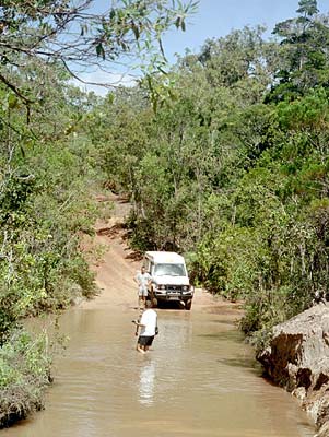 Siggi steht skeptisch vor der Ueberfahrt während Richard nach der besten Spur sucht und dabei die obligaten Fotos schiesst.