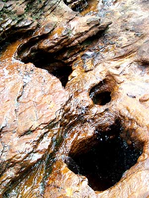 Diese Löcher im Flussbett wurden während Jahrhunderten durch Steine gemahlt.