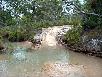 Der Mistake Creek bietet mit dem kristallklaren Wasser eine Gelegenheit für eine Erfrischung. Kurz davor biegt ein Track links auf die Bypass Road ab.