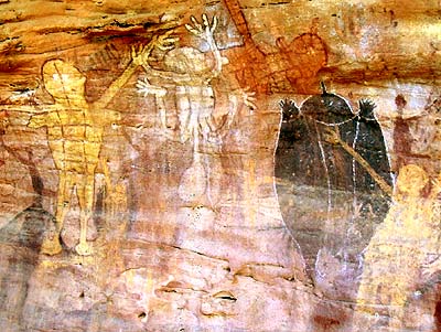 Diese Zeichnungen zeigen eine Frau, einen bösartigen Geist und ein Echidna (Ameisenfresser)