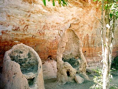 Die Gu Gu Yalangi Gallery am Ende des Rundweges. Im Vordergrund zwei zerfallene Termitenhügel. Sind Termitenhügel wirklich hohl oder sind diese nur von Wind und Wetter ausgehöhlt?