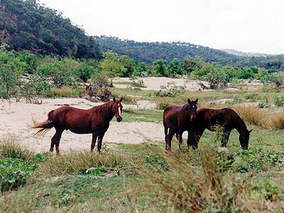 Endlich am Palmer River. Wie immer vor einer Flussüberquerung, durchwate ich das Wasser zuerst zu Fuss. In der Flussmitte mache ich aber schleunigst kehrt - liegt doch da tatsächlich eine Schlange im Wasser ...