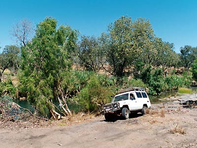 Alex in der Ausfahrt des Humbert River - der Troopie hat zum Teil rechte Schräglage