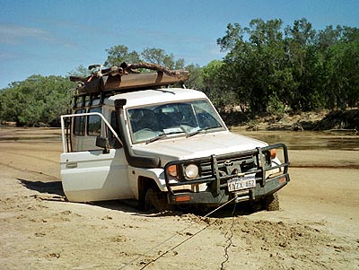 Bei Manari noch ein kleiner Abstecher an den nächsten Beach und schon ist's passiert - booged im weichen Sand des Creeks. Mit schaufeln und mit Hilfe der Winde komme ich zum Glück vor der Flut wieder auf sicheren Untergrund.