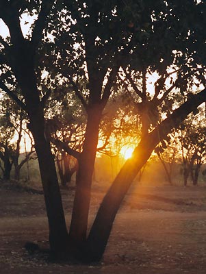 Sonnenuntergang bei der Kambolgie Bush Camp Area