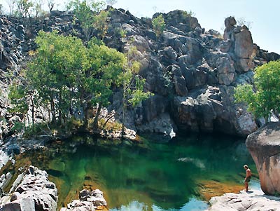 Oberhalb des Gunlom Falls sind herrliche Wasserpool zu finden die eine erfrischende Abkühlung garantieren.