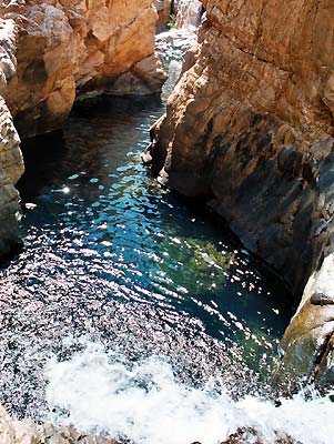 Die Pool sind tief ausgewaschen und die Wassertiefe ein paar Meter - von den Klippen springst du aber auf eigene Gefahr!