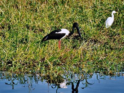 Im Vordergrund ein Jabiru - das Wappentier des Northern Territory und die einzige Storchenart in Australien